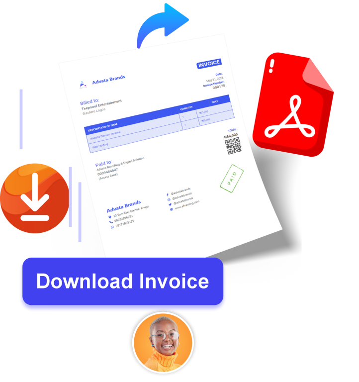 Create professional invoices in seconds! With Advata Invoice, generating an invoice is as simple as a single click. Our intuitive interface lets you quickly fill in the details and send invoices without any hassle, saving you valuable time and effort.